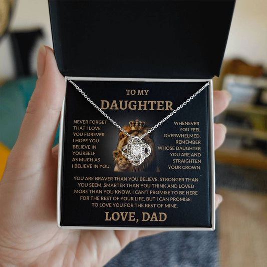 To My Daughter - Love Dad - Love Knot Necklace - Lion